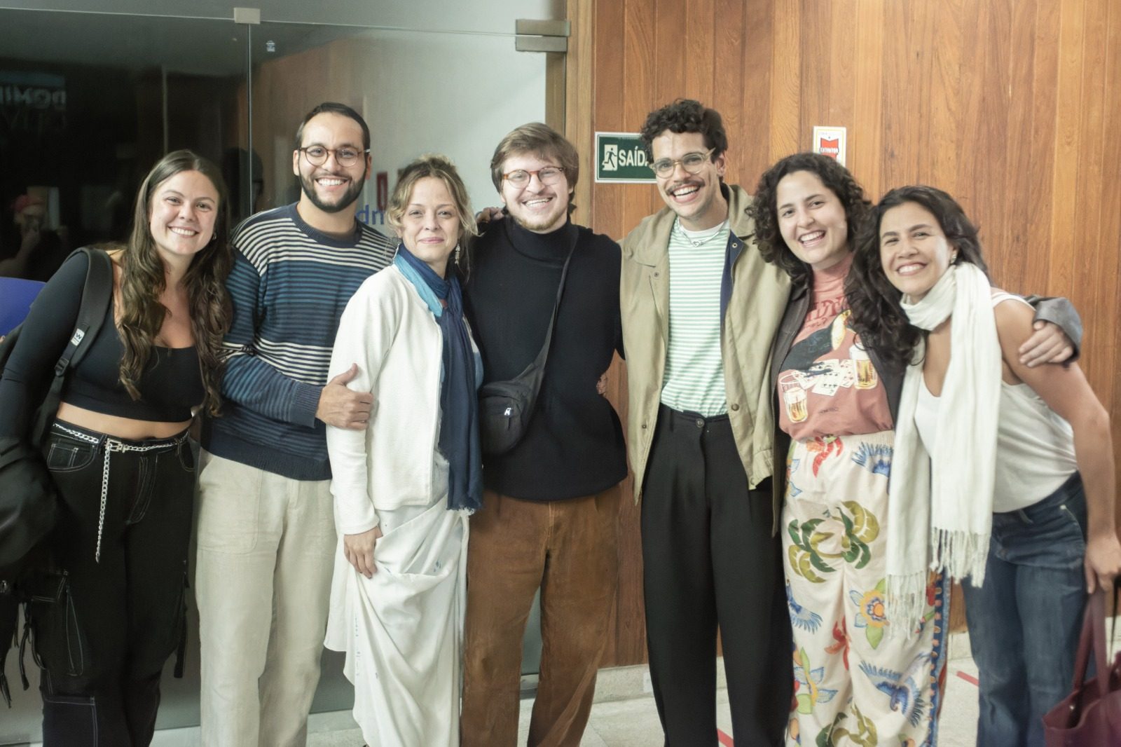 A diretora Stella Rabello e os atores Maria Paula Marini, Sued Lincoln, Carol Matos e Bernardo Coimbra receberam amigos da classe artística na sessão apresentada, na última sexta-feira, no Teatro Municipal Domingos Oliveira, da peça “Alguma coisa falta aqui”
