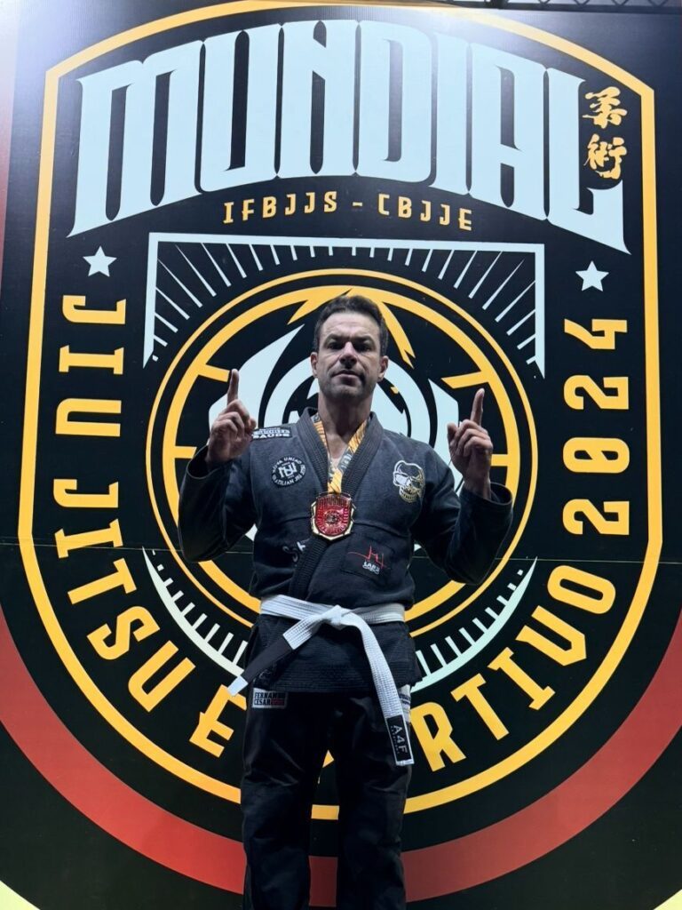 Após décadas afastado das competições de Jiu-Jitsu, Jefferson decidiu assumir um novo desafio. Conciliando uma agenda intensa de trabalho, retornou aos treinos e iniciou sua jornada competitiva na modalidade, conquistando um feito expressivo logo no início: o título de campeão mundial na categoria Master em 2024.