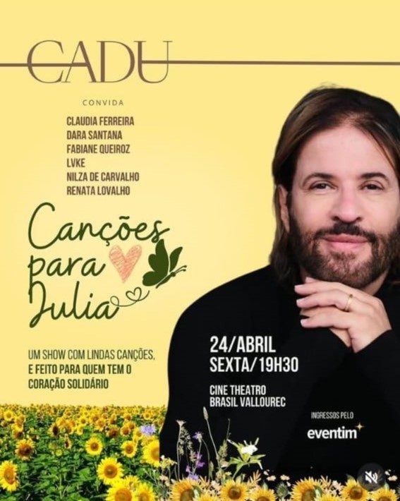 Canções para Julia” é o show que o cantor e compositor vai apresentar no dia 24 de abril , sexta feira, 19:30h em prol da causa de Julia, uma bela menina que nasceu com paralisia cerebral.
