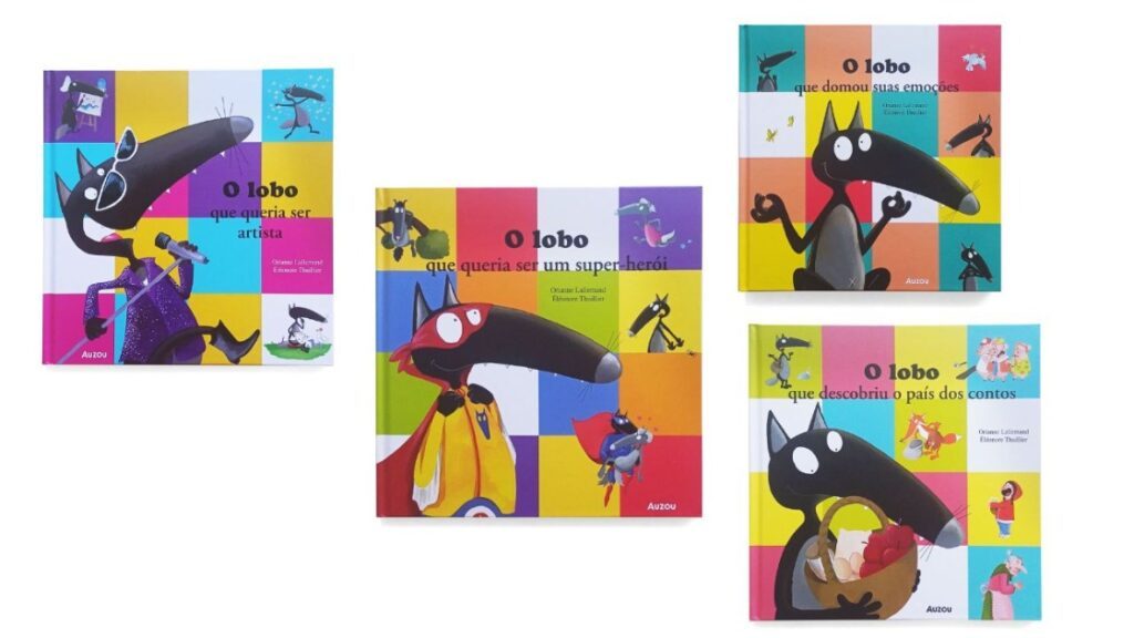 Entre os títulos disponíveis estão “O Lobo que Queria Ser Artista”, “O Lobo que Descobriu o País dos Contos”, “O Lobo que Queria Ser um Super-Herói” e “O Lobo que Domou Suas Emoções”, histórias que abordam desde a busca pela identidade até o desafio de lidar com emoções como ciúme, alegria e tristeza.