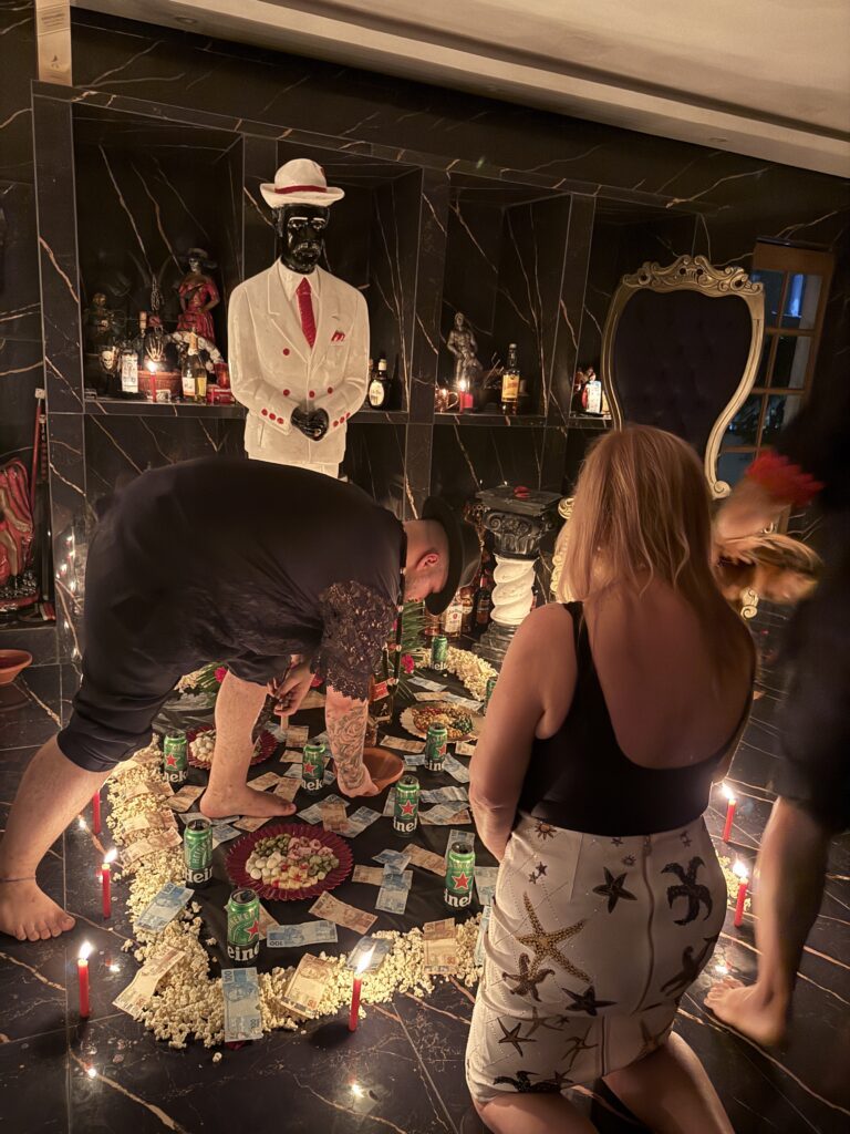 Durante o relato, Giovani explicou que participou de um trabalho espiritual conduzido por Tia Carmen. O ritual incluiu práticas energéticas voltadas ao fortalecimento do fluxo financeiro.
