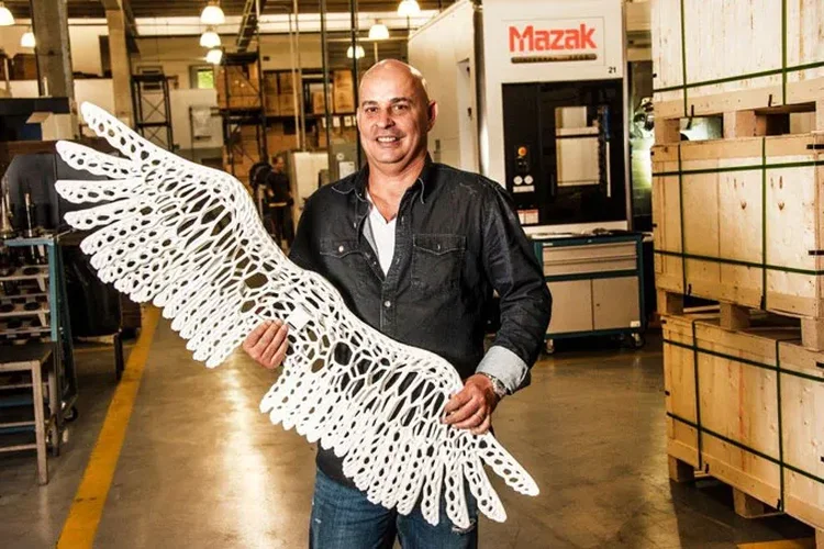 Fundador da Modefer, empresa referência no setor de autopeças, Santos subverte a lógica convencional de separação entre o industrial e o artístico. Sua biografia é indissociável de seu ambiente de trabalho, em vista de que utiliza sua experiência em gestão e engenharia para redirecionar tecnologias de ponta de seu parque industrial, como robótica, corte à laser e manufatura aditiva, para fins estéticos.