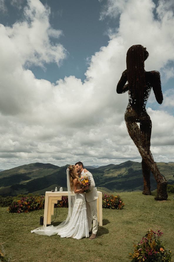 Com cerca de 100 convidados, o casamento foi marcado por uma experiência sensorial e afetiva, em total conexão com o ambiente natural. O Ibiti Projeto, conhecido por sua proposta de imersão sustentável e por abrigar obras de arte espalhadas por toda a área, incluindo sete estátuas colossais que servirão de cenário para a cerimônia, será o palco do “sim” do casal.