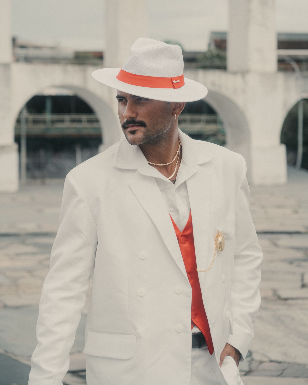 Com esse visual, o artista reafirma sua conexão com a moda como linguagem de expressão e com a cultura brasileira como território vivo, onde fé, arte e estética se encontram e se reinventam.