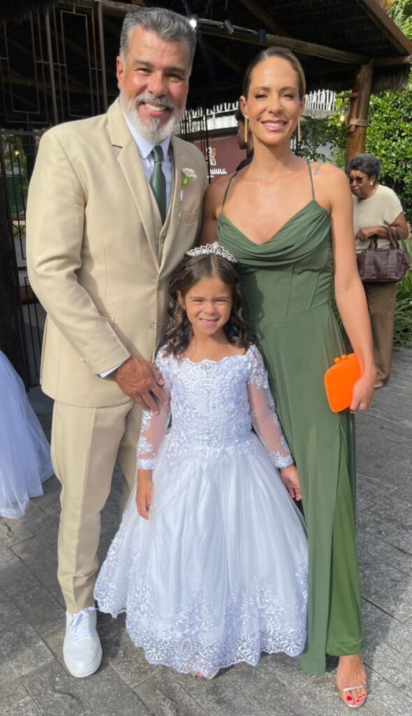 O casamento reuniu amigos e familiares em um clima de celebração e emoção. Ao lado da esposa, Shay Dufau Mattar, Maurício acompanhou de perto a participação da filha, que acabou roubando a cena como daminha.