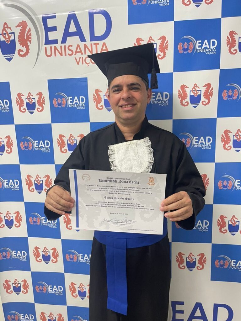 O poeta e escritor viçosense Thiago Winner acaba de conquistar mais uma importante etapa em sua trajetória acadêmica e profissional. Thiago se graduou em Biblioteconomia pela Unisanta, consolidando sua formação no ensino superior e fortalecendo ainda mais sua atuação na área da Educação.