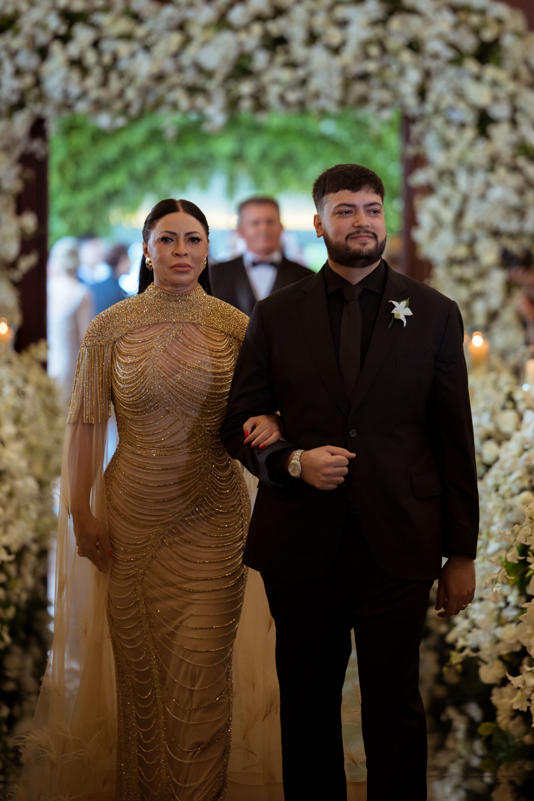 A cerimônia aconteceu na tradicional Igreja Nossa Senhora do Brasil, em São Paulo, com trilha regida pelo maestro Renato Misiuk e a emocionante participação de um coral de 20 crianças. O noivo entrou acompanhado da mãe, Sylvia Design, ao som da icônica trilha de O Poderoso Chefão — um gesto repleto de simbolismo e emoção que comoveu os convidados.